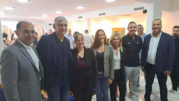 Σήμερα όμως έχουμε επιπλέον την χαρά και την τιμή να υποδεχόμαστε σε αυτή την σημαντική για το νησί μας στιγμή, την Ολυμπιονίκη Ειρήνη Αϊνδιλή η οποία κέρδισε το χάλκινο μετάλλιο στους Θερινούς Ολυμπιακούς Αγώνες του 2000 στο Σίδνεϋ της Αυστραλίας με την ομάδα του ανσάμπλ και τον επίσης χάλκινο Ολυμπιονίκη στην Ιστιοπλοΐα το 2016 στο Ρίο ντε Τζανέιρο, Παύλο Καγιαλή. Η παρουσία τους στην σημερινή εκδήλωση αποτελεί έμπνευση για τη νέα γενιά.