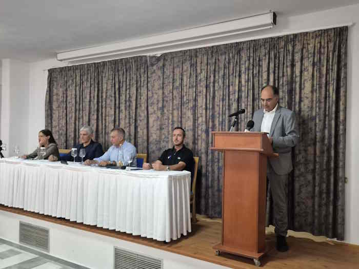 Η κεντρική εκδήλωση πραγματοποιήθηκε στην κατάμεστη αίθουσα «Αθηνά» του ξενοδοχείου Paros Agnanti Resort & Spa στην Παροικία, όπου ο κ. Βρούτσης ανέπτυξε το όραμα του Υπουργείου με θέμα: «Νησιωτικότητα και Αθλητισμός - Οι μεγάλες αλλαγές και οι κορυφαίες προκλήσεις στον Ελληνικό Αθλητισμό».