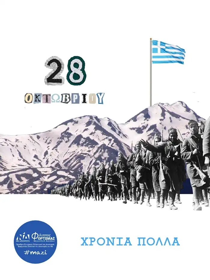 Η επέτειος της 28ηςΟκτωβρίου μας θυμίζει την αντρειοσύνη του λαού μας και τη βαθιά του πίστη στις αξίες και τα ιδανικά που κληρονόμησε από τους ένδοξους προγόνους μας. Η ελευθερία, το ύψιστο αγαθό ενός λαού που αυτοπροσδιορίζεται, δεν χαρίζεται και δεν εξαγοράζεται αμαχητί. Δεν υπάρχει περιθώριο συνειδητού συμβιβασμού, παρά την αριθμητική υπεροχής που έχει η εκάστοτε απειλή.