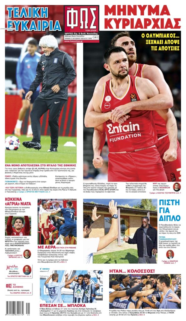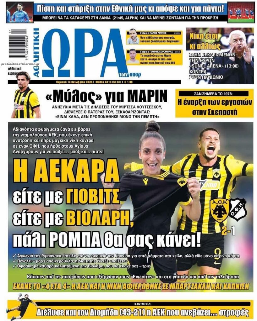 Οι αθλητικές εφημερίδες, σήμερα Κυριακή 12 Οκτωβρίου