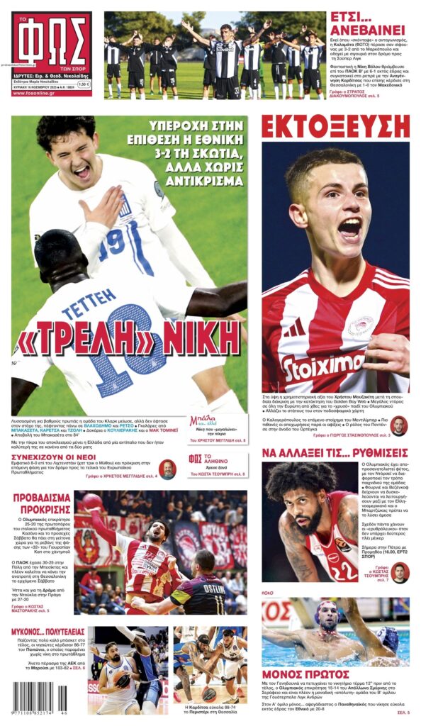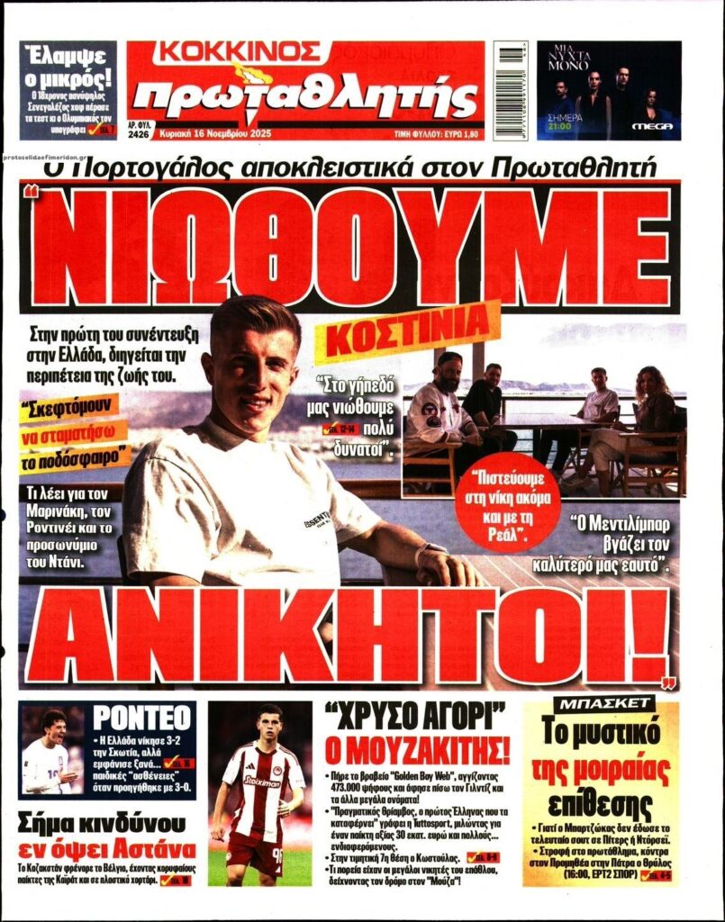 Oι αθλητικές εφημερίδες, σήμερα Κυριακή 16 Νοεμβρίου