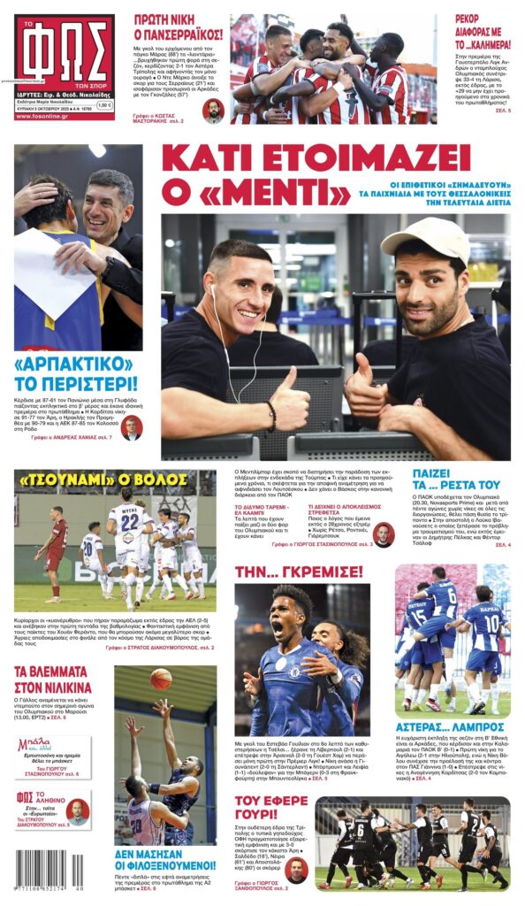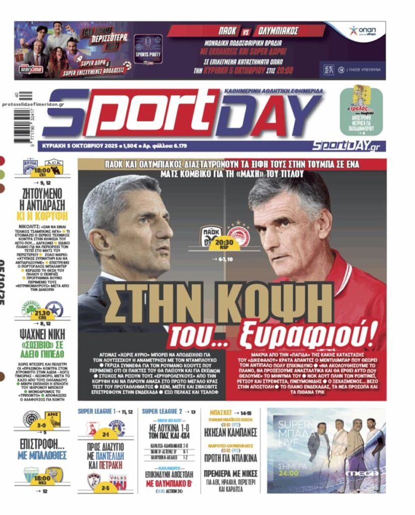 Οι αθλητικές εφημερίδες, σήμερα Κυριακή 5 Οκτωβρίου