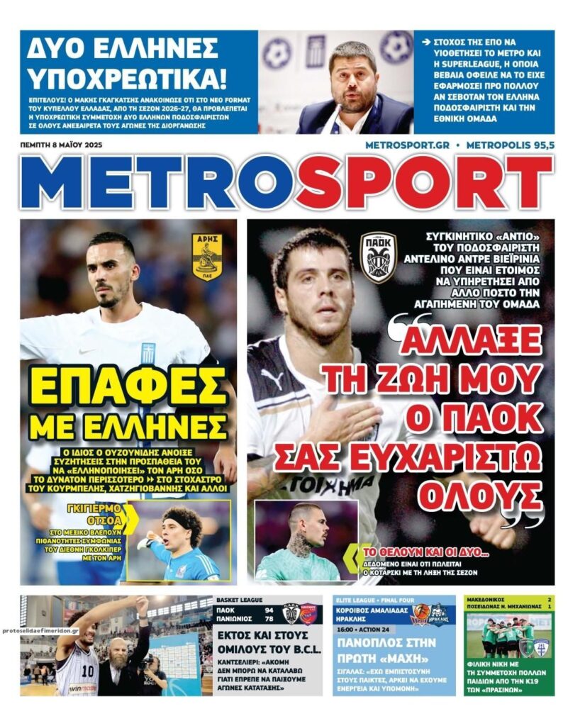 Οι αθλητικές εφημερίδες, σήμερα Πέμπτη 8 Μαΐου