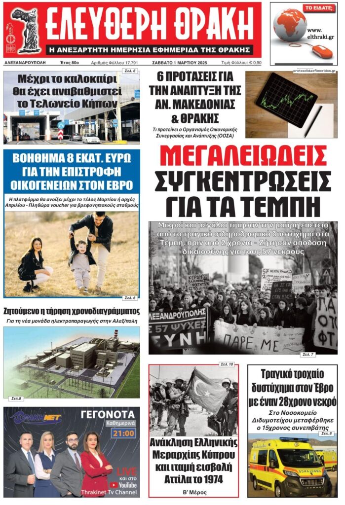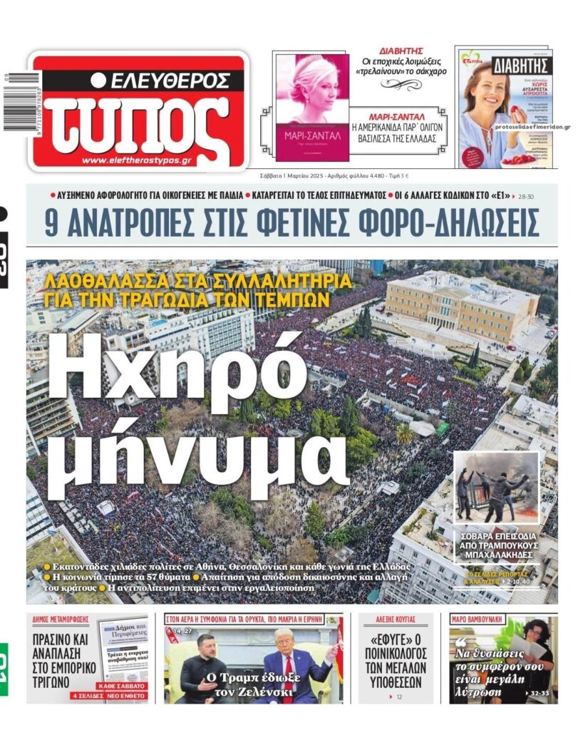 Οι εφημερίδες, σήμερα Σάββατο 1η Μαρτίου