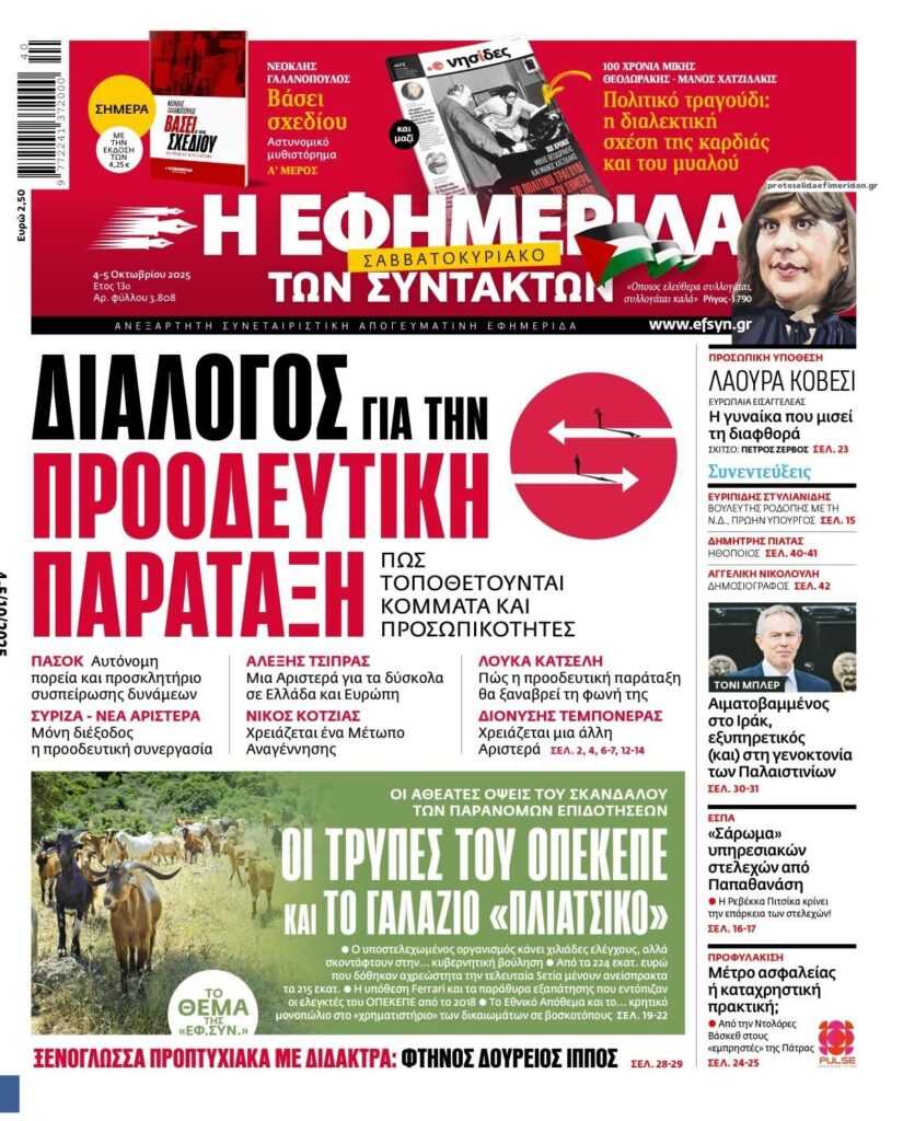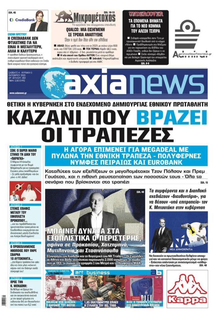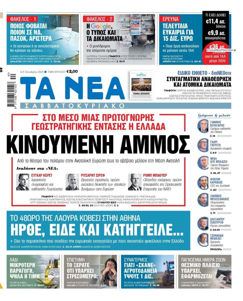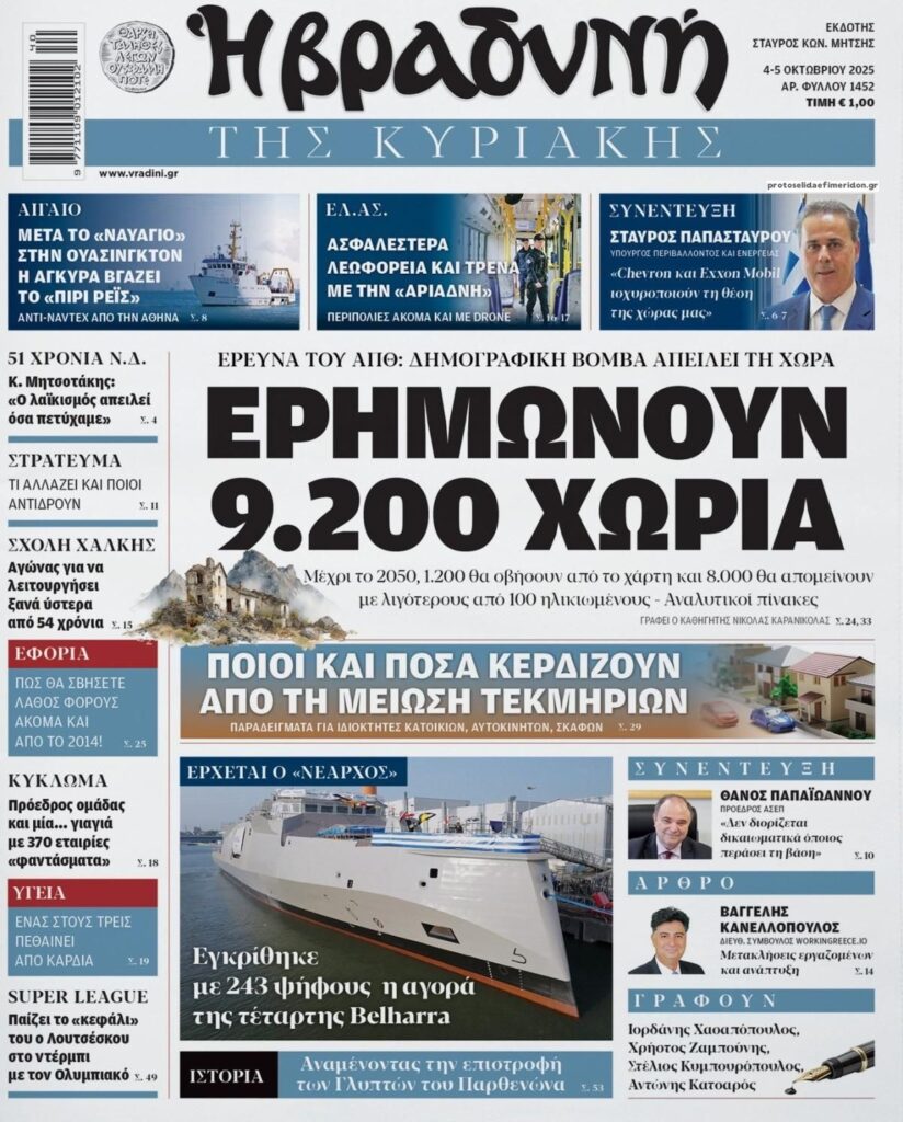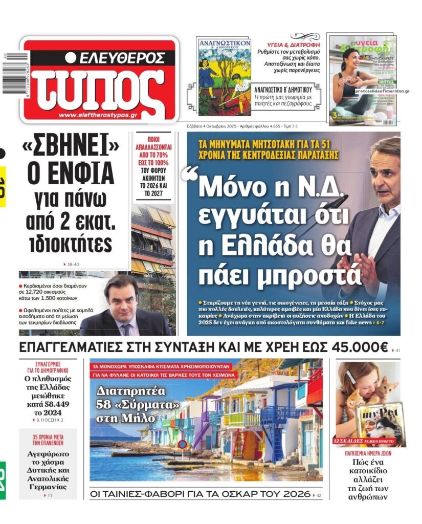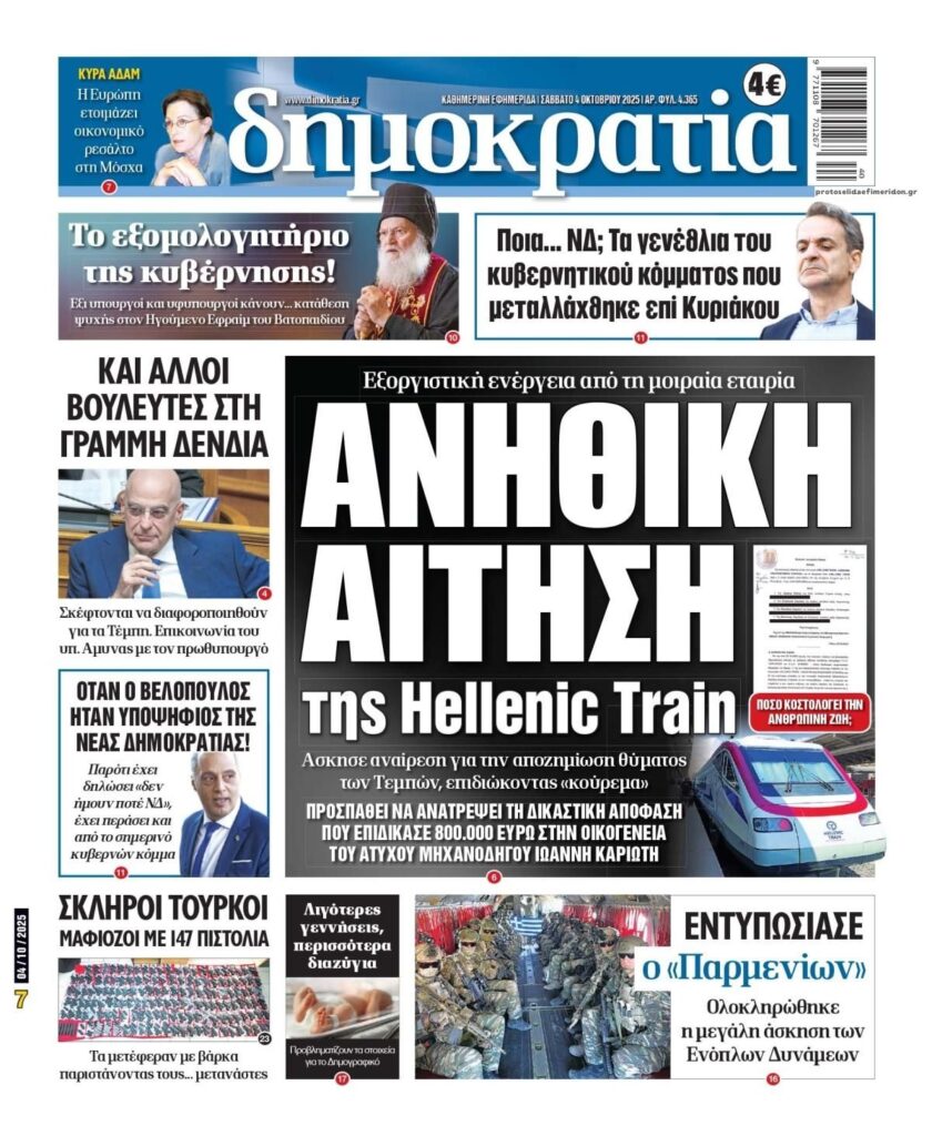 Οι εφημερίδες, σήμερα Σάββατο 4 Οκτωβρίου