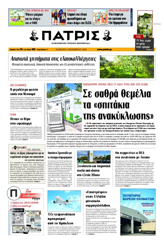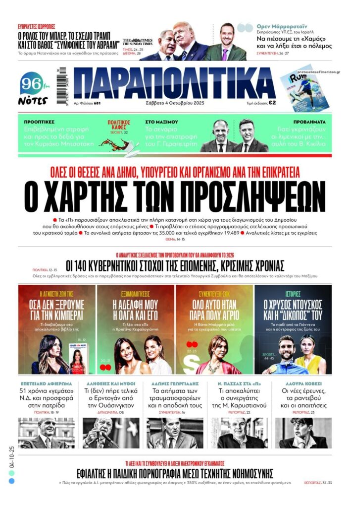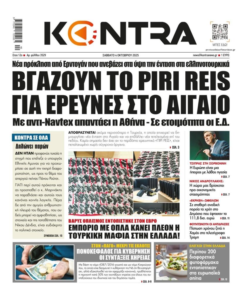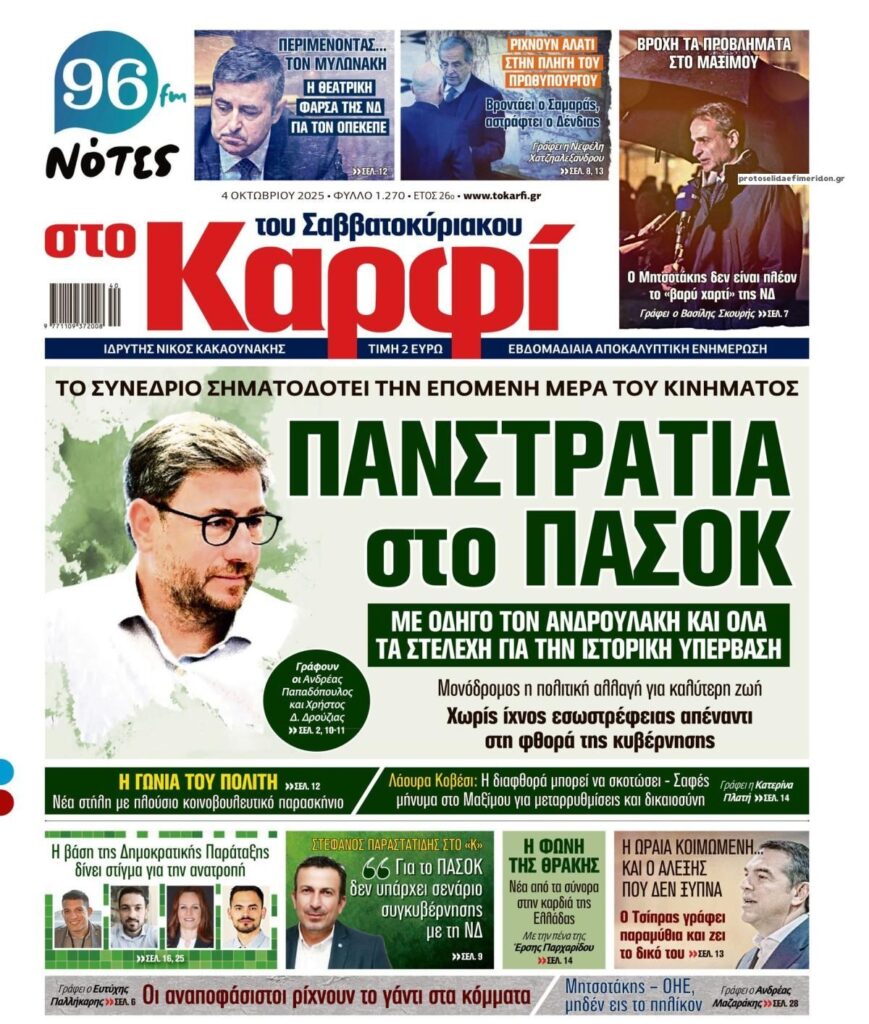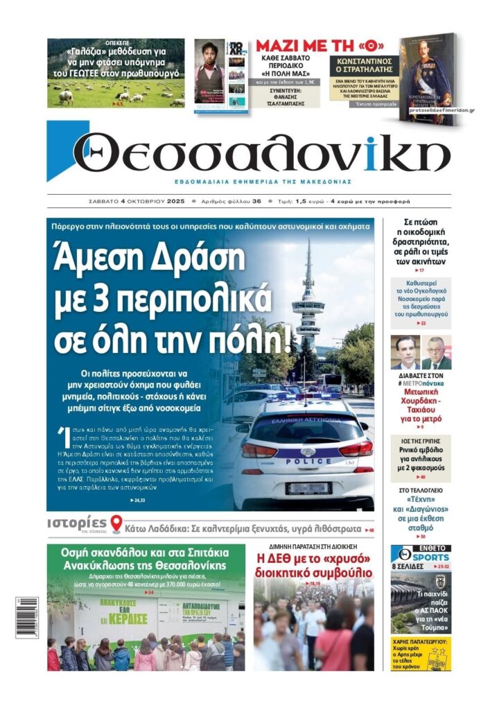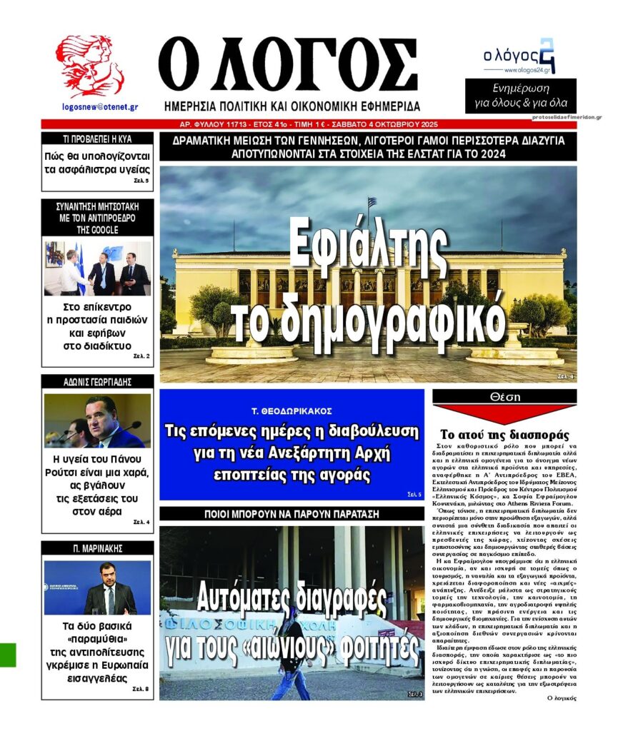 Οι εφημερίδες, σήμερα Σάββατο 4 Οκτωβρίου