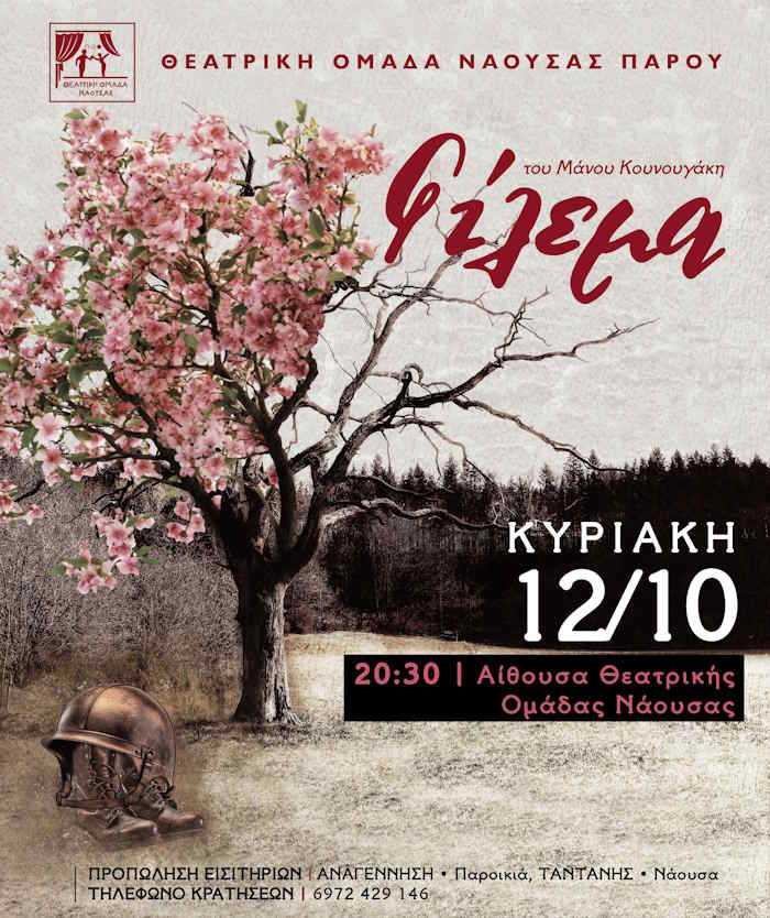 Η Θεατρική Ομάδα Νάουσας, επαναλαμβάνει την παράσταση του έργου του Μάνου Κουνουγάκη «Φίλεμα» την Κυριακή 12 Οκτωβρίου στις 8:30μ.μ. στην Αίθουσα της θεατρικής Ομάδας στη Νάουσα Φίλεμα.