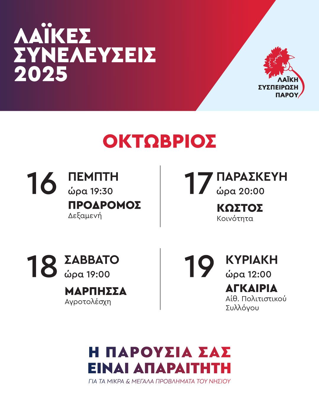 Πρόγραμμα «Λαϊκών Συνελεύσεων» ανά Κοινότητα - Οκτώβριος 2025