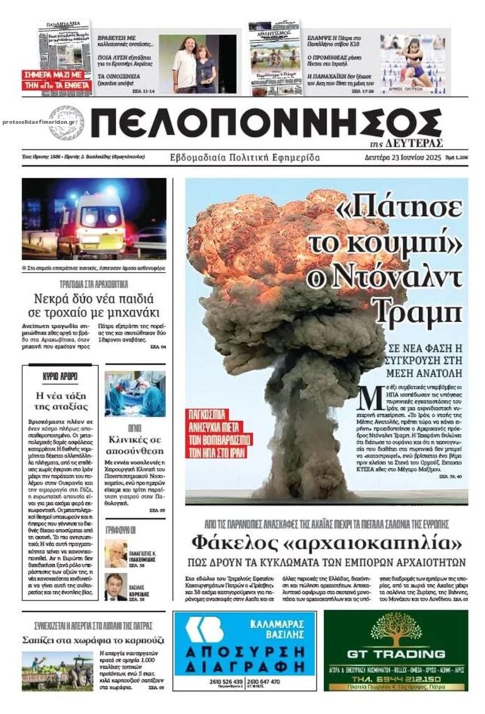 Oι εφημερίδες, σήμερα Δευτέρα 23 Ιουνίου